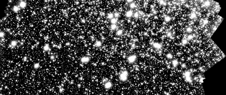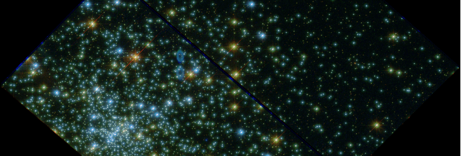 This is a combination of HST (814 nm is blue, 1500 nm is green and 3200 nm is red). Galaxies appear in red in the background that are very distant; some are gravitationally lensed — the strange arcs. The objects indicated with the squares are white dwarfs that we are studying to look for evidence …